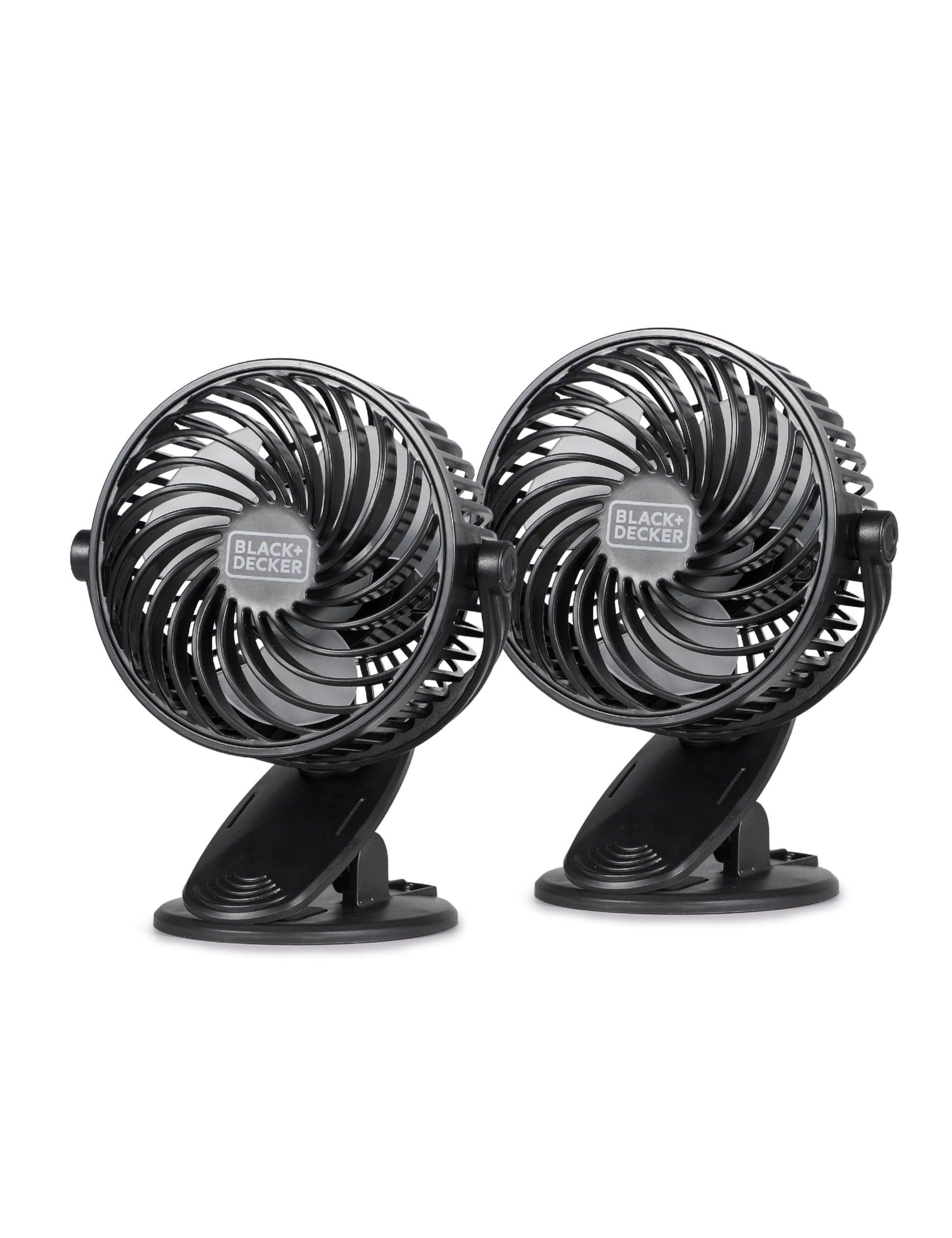 [Home or Office: Use our cooling fan for your home or office to ensure you have the breeze you need. This BLACK+DECKER personal fan is compact in size and easily transported from one place to the next. Clip-On Fan: This mini desk fan (5.1" x 3.3" x 6.5") is also a clip on fan allowing you to fasten to the edge of your desk a nearby drawer end of table a headboard and other convenient locations. Standing Fan: Our small desk fan (0.55 lbs.) can also be used as a standing fan. Easily place it anywhere you want. Situate next to your desktop or use as a convenient tabletop fan. Three-Speed Fan Settings: Our table fan and office fan comes with three fan settings -- Low Medium High. An adjustable 360 degree tilt angle secures your airflow in just the right space. Two-Pack: This 2 pack fan bundle gives you two clip on fans at work or home to double your workday breeze. Use both tabletop fans for personal use or give one to a colleague or friend.]